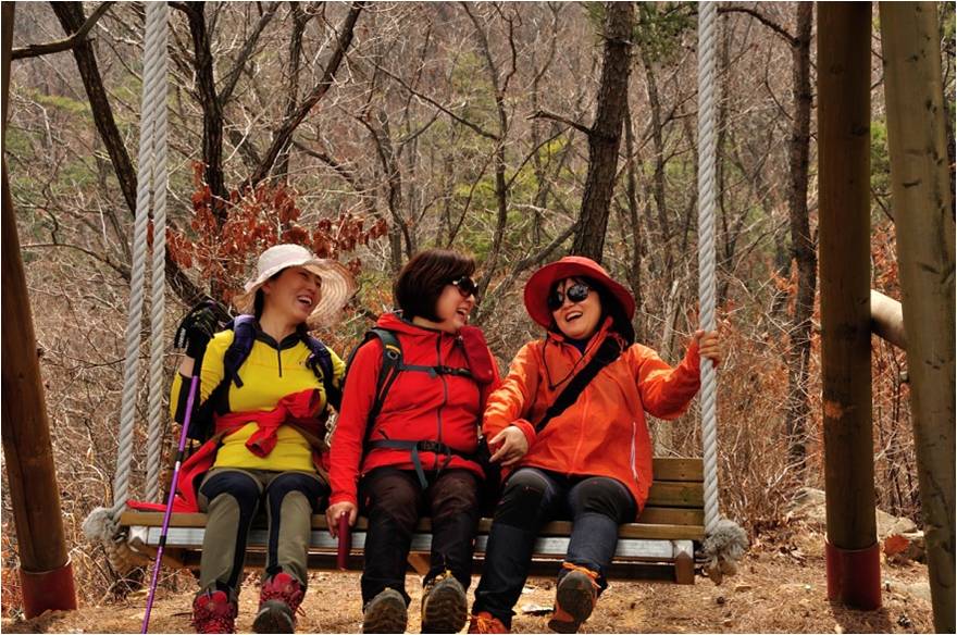 둘레길을 걷는 동안에는 사람들 얼굴에 미소와 웃음이 떠나지 않는다. 회색빛 콘트리트 더미만 보다가 푸르른 하늘과 녹음 가득한 숲을 보니 마음이 편해지고 마냥 행복해진다. 게다가 친한 친구와 함께 걸으면서 그동안 쌓여던 이야기보따리를 풀고 같이 맛있는 점심식사까지 한다면 하루가 풍성하게 느껴진다. 이렇게 보내는 것이 길여행의 매력이다. 등산은 오르막을 오르는 동안에는 앞사람 뒷모습만 볼 뿐 얘기를 틈이 없다. 숨쉬기도 힘드니 말이다. 그저 정상에서 내려다본 풍경을 볼 때 감상에 젖어든다. 그리고 다시 푸른 숲을 보지 못하고 땅만보고 내려와야 한다. 길여행과 등산은 이렇게 다르다. 그래서 걷는 사람들은 보다 젊어보이고 활기가 넘친다. 얼굴에 웃음이 떠나지 않는다. 많이 걷기 보다는 가고싶은 만큼만 걷기 때문에 체력적인 한계도 문제가 되지 않는다.