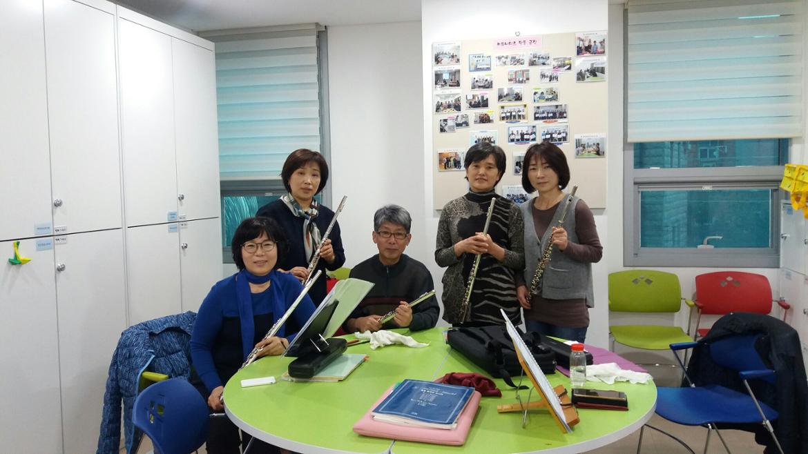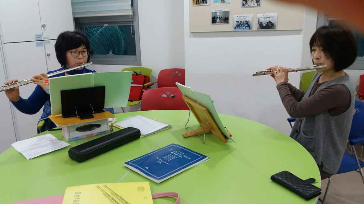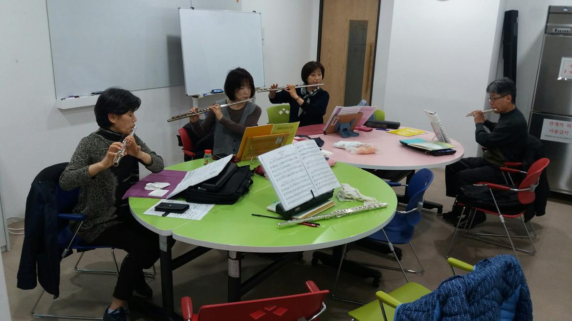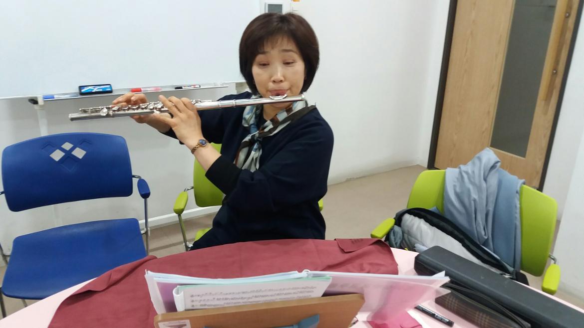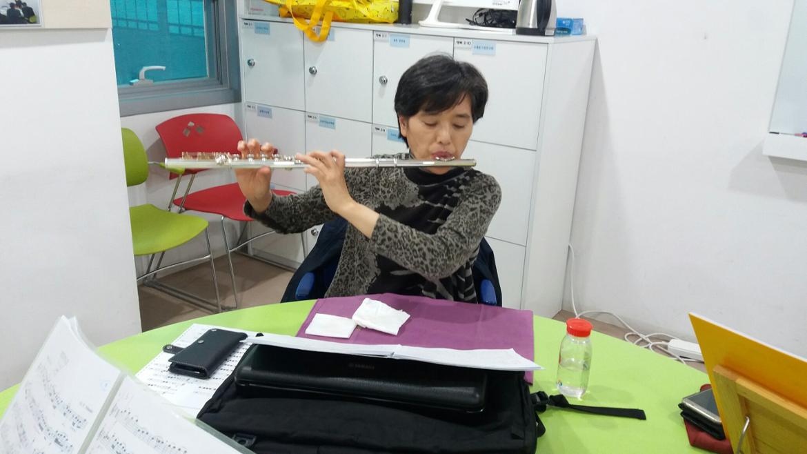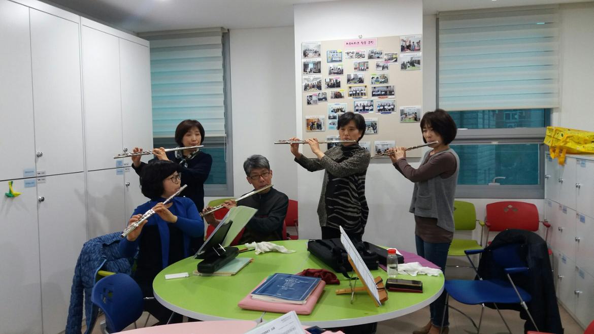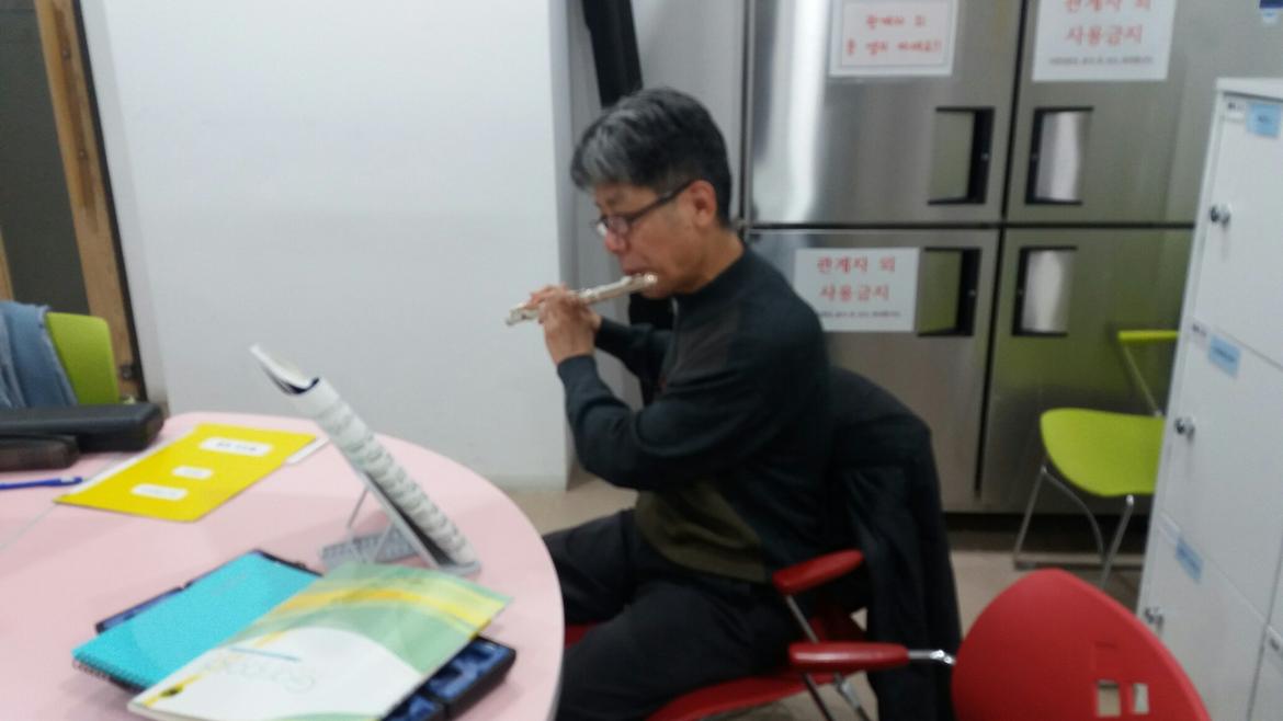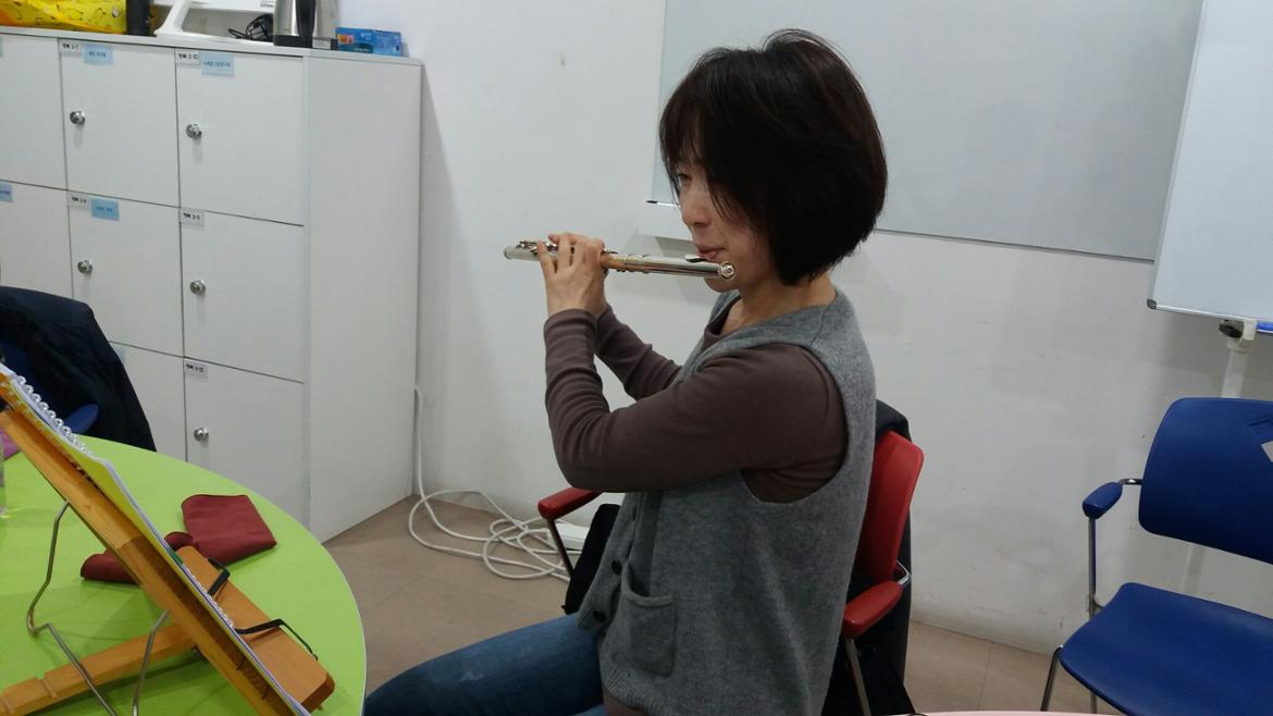 모두 모여 각자 연습도 하고, 서로서로 입술모양도 봐주고,화기애애한 분위기 속에 플룻 소리는 퍼져갑니다.