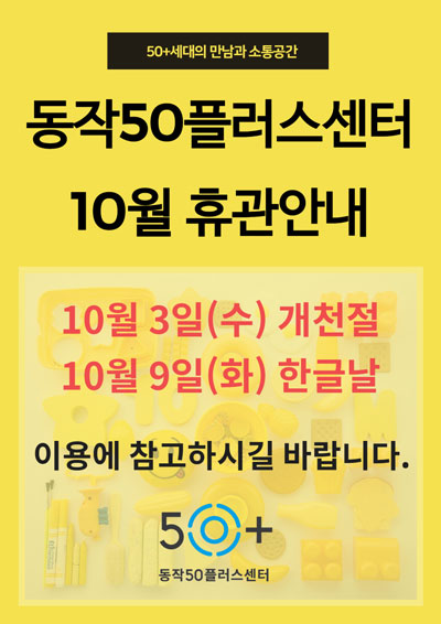 서울시 동작센터 | 동작50플러스센터 10월 휴관 안내