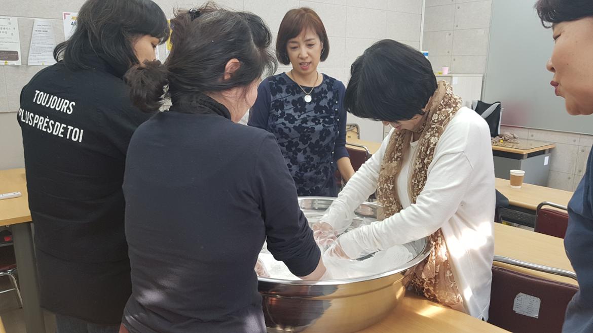 또한 저희  동아리는 4년 동안 ‘서초구 사랑의 된장 간장 담그기’ 봉사도 하고 있습니다.  서초구청장님의 사모님이