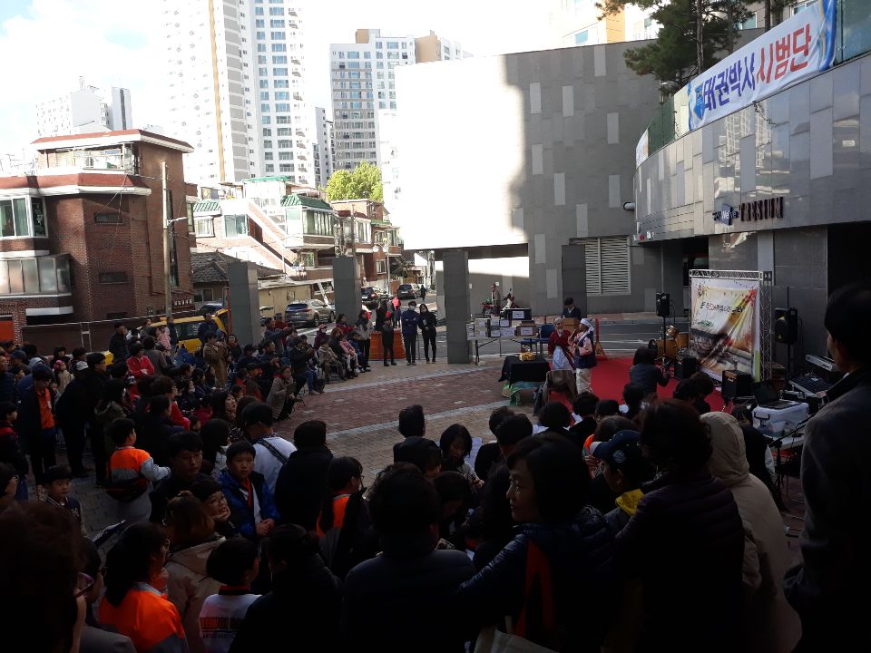 3시 행사 시작으로 우리팀은 2번째 순서로 3시 30분쯤 공연을 시작하였으며, 준비해 온 50+ 커뮤니티 콜라보 배경막을 펼치고