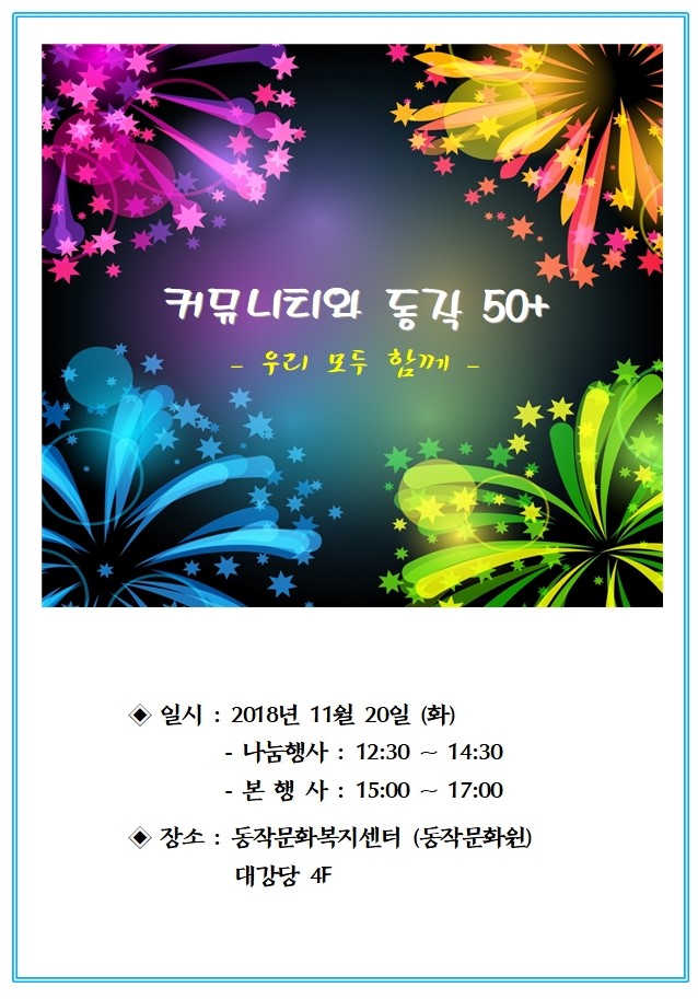 커뮤니티와 동작50+ "우리모두함께" 행사가 무사히 잘 마무리되었습니다.