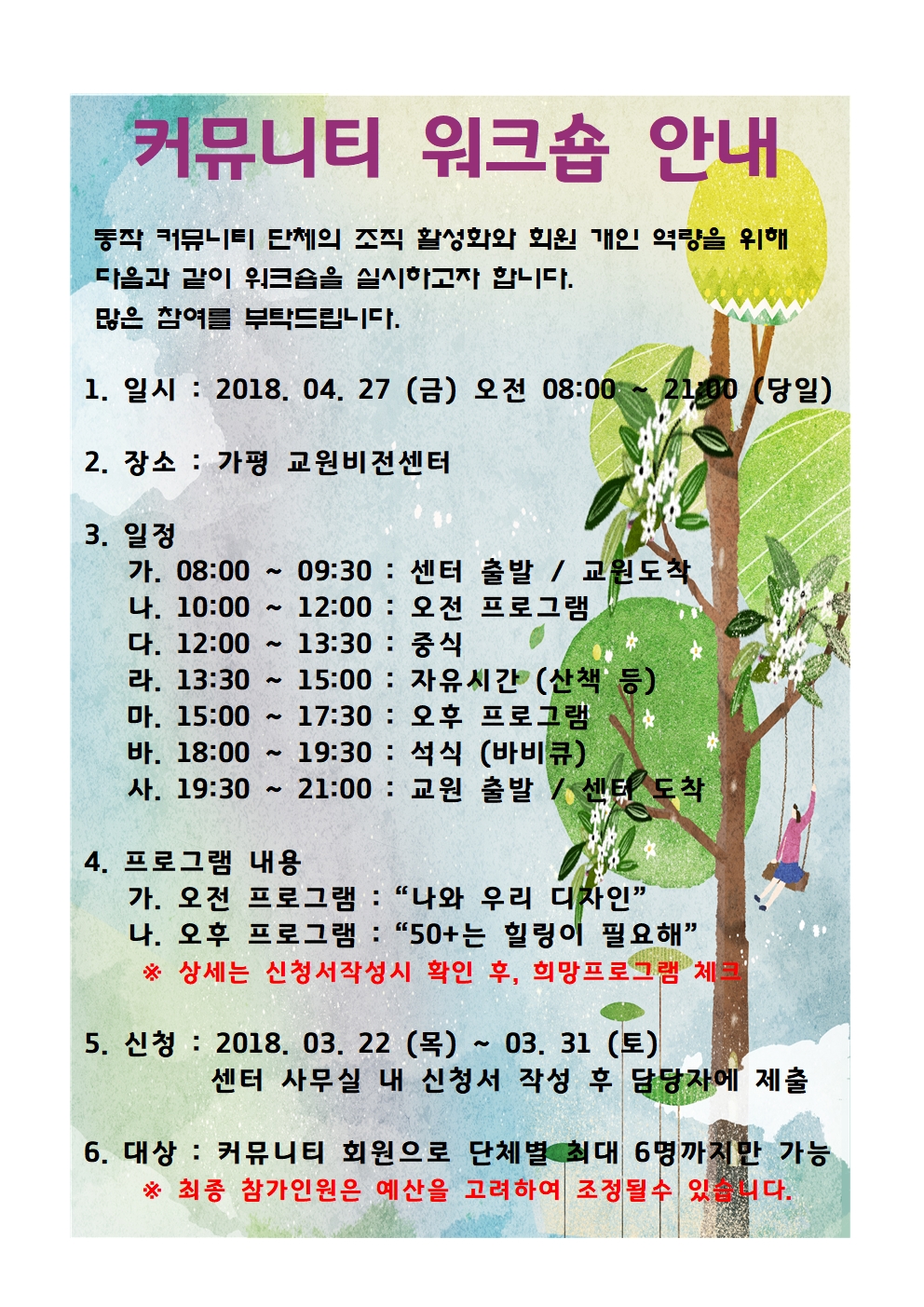 서울시 동작센터 | 커뮤니티 단체 워크숍 안내 및 신청서 다운로드