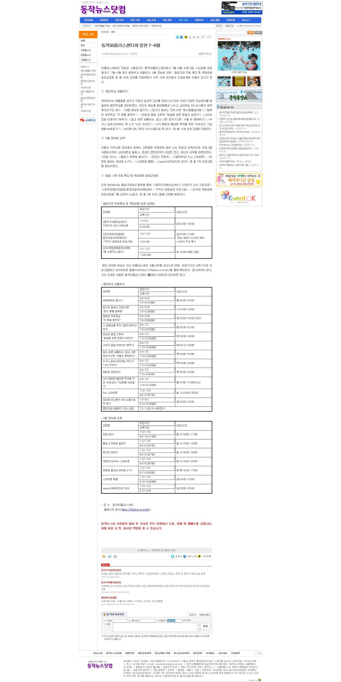 180705 동작뉴스닷컴 동작50플러스센터와 알찬 7~8월