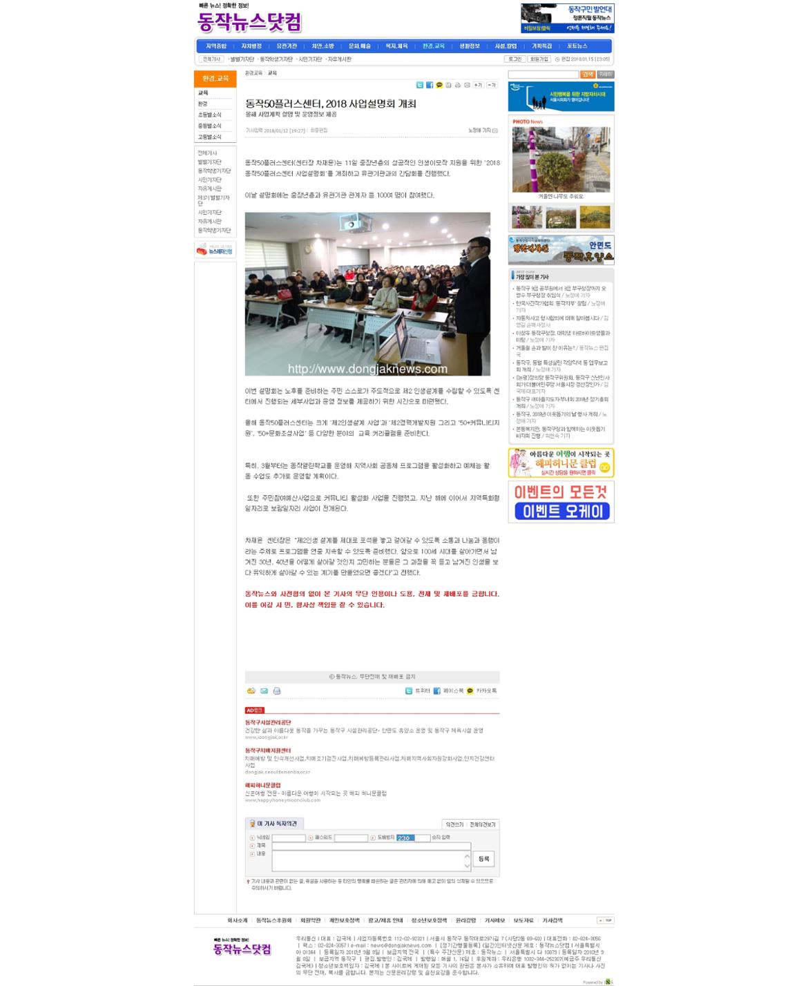 (180112 동작뉴스닷컴) 동작50플러스센터. 2018 사업설명회 개최