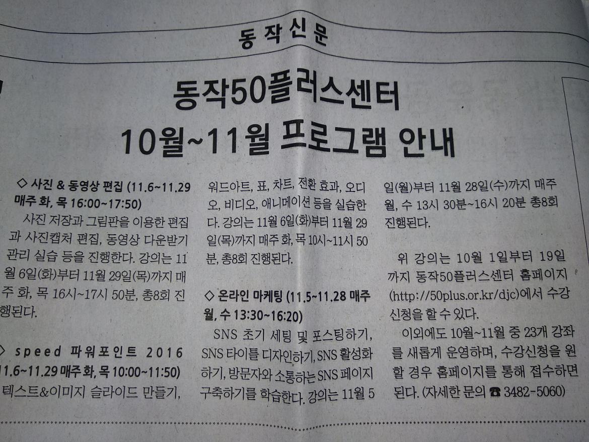(181001 동작신문) 동작50플러스센터 10월 ~ 11월 프로그램 안내
