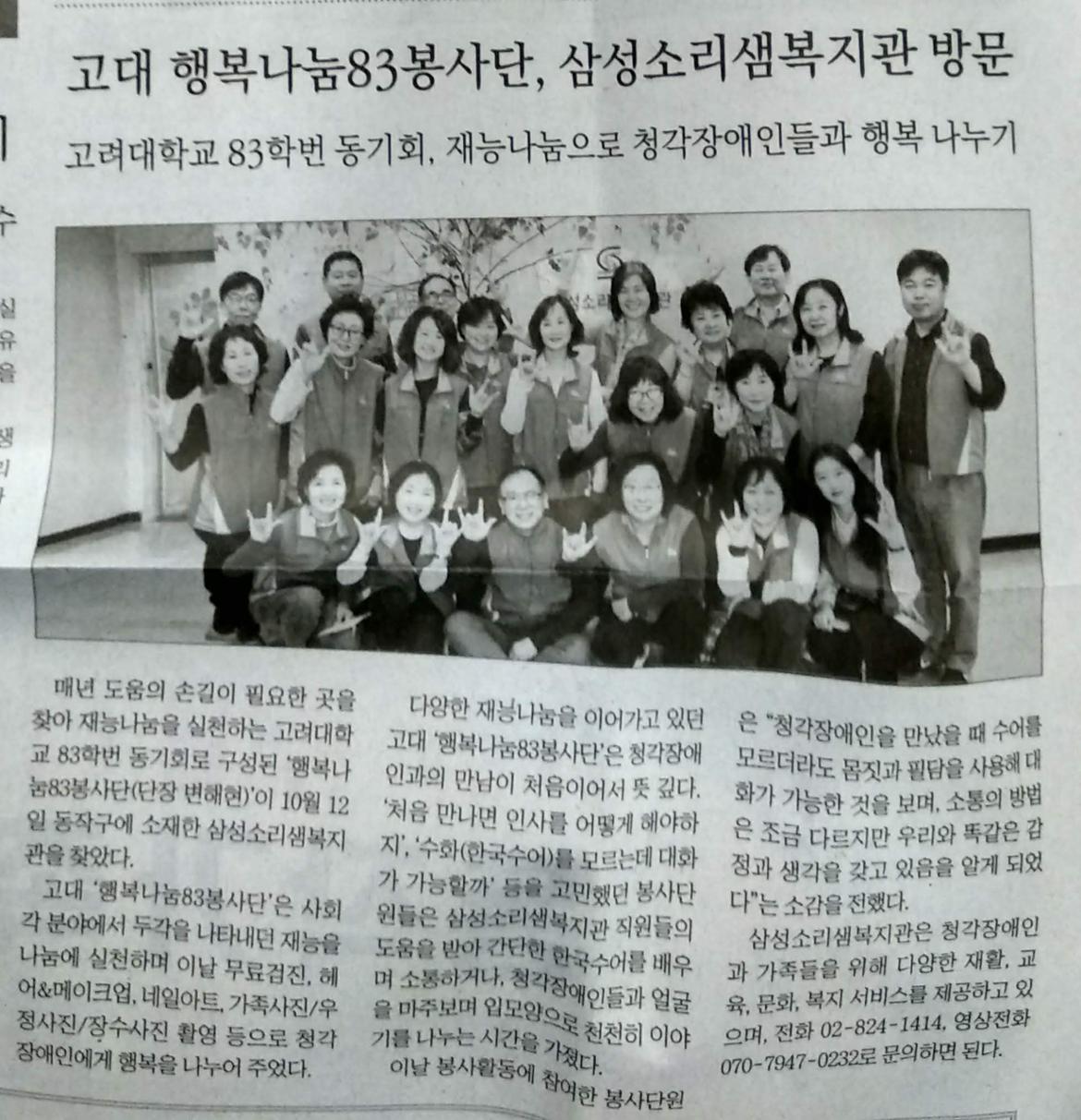 (181016 동작신문) 커뮤니티 행복나눔83봉사단 삼성소리샘복지관 방문