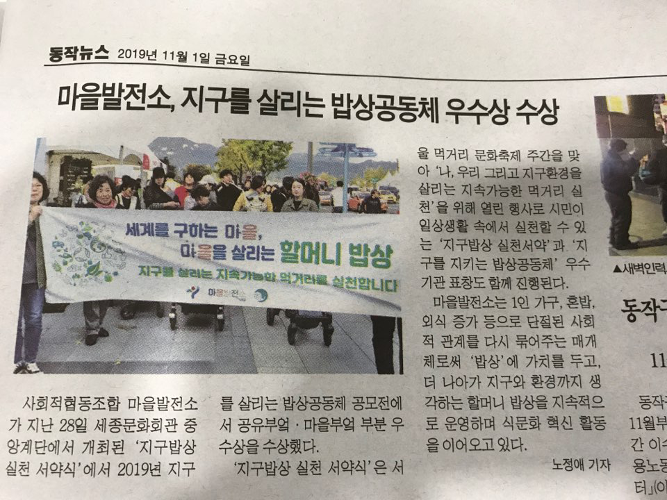 (동작뉴스) 마을발전소, 지구를 살리는 밥상공동체 우수상 수상