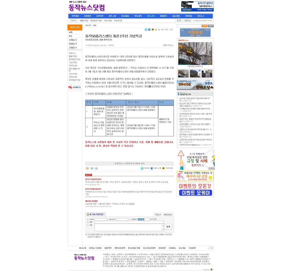 180303 동작뉴스닷컴 동작50플러스센터 개관2주년 기념특강