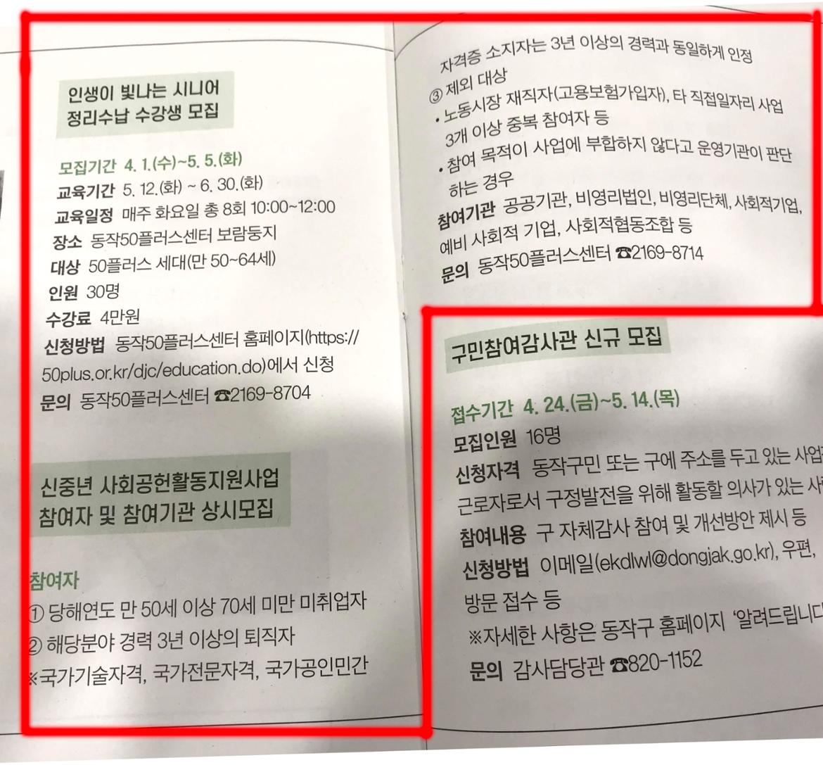 <동작구 소식지 5월호 - 4월 27일 배부> 에도 <인생이 빛나는 시니어 정리수납>과