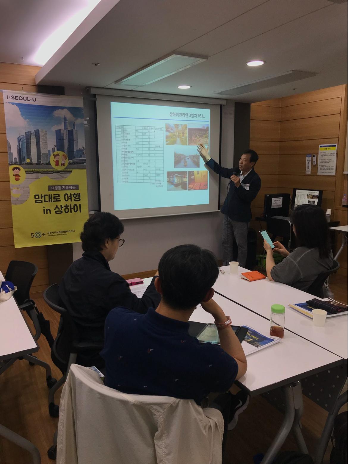 1조 '상하이 천리안'팀의 일정발표입니다. 실제 중국에 다녀오신 경험과 중국에 계신 지인분의 팁을 전수받아 구성하셨다고 합니다. 특히 1조의 김홍근 선생님께서 전체 저녁 모임에서 함께 할 식당과 야경 관람 일정을 제안해주시고 직접 가이드 까지 자처하여주시기도 하였습니다.