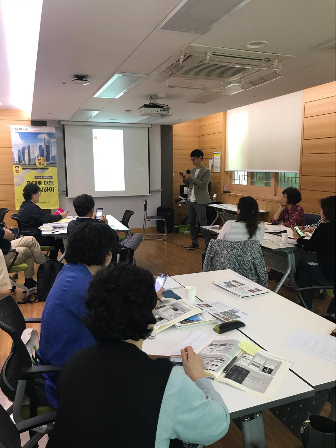 각각 여행일정을 공유 한 뒤, <청년이 전하는 APP 활용법> 강의가 이어졌습니다. 여행지에서 유용하게 사용할 수 있는 어플에 대한 강의와 실제 사용 영상을 시연하며 생생한 교육을 해주셨습니다.