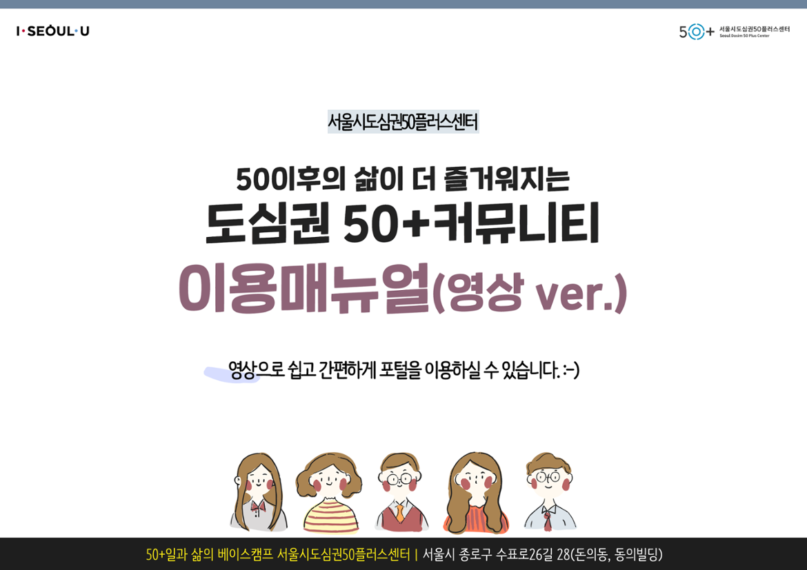 서울시도심권50플러스센터 커뮤니티 이용매뉴얼을 영상으로 공유드립니다.