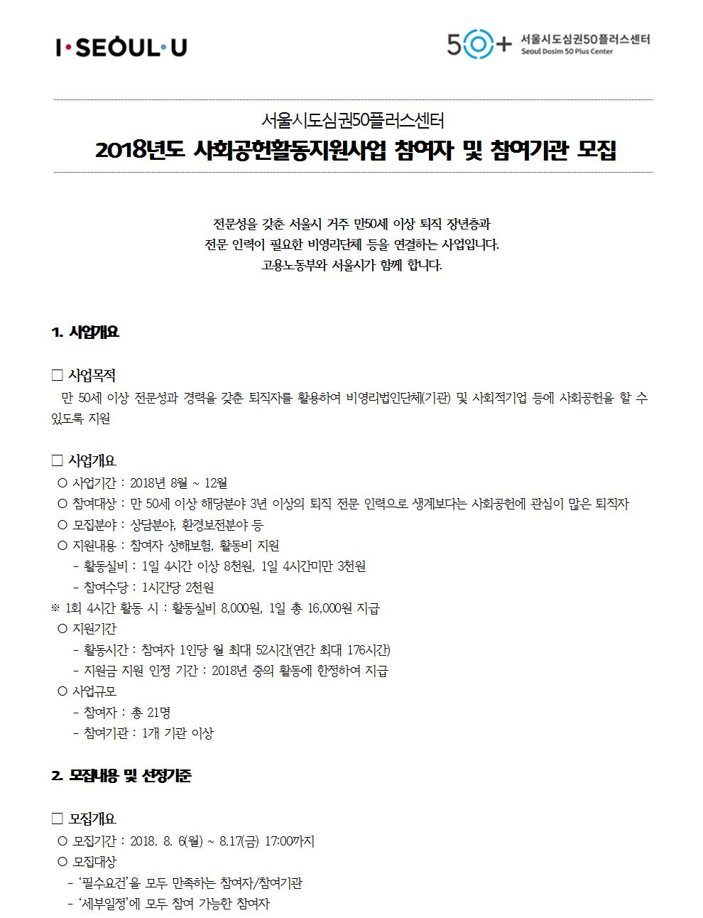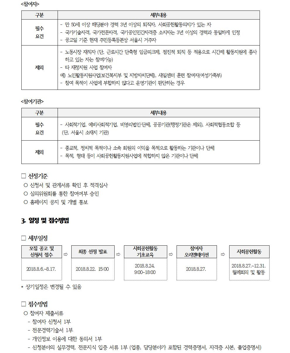 2018년 사회공헌활동지원사업 참여자 및 참여기관 모집