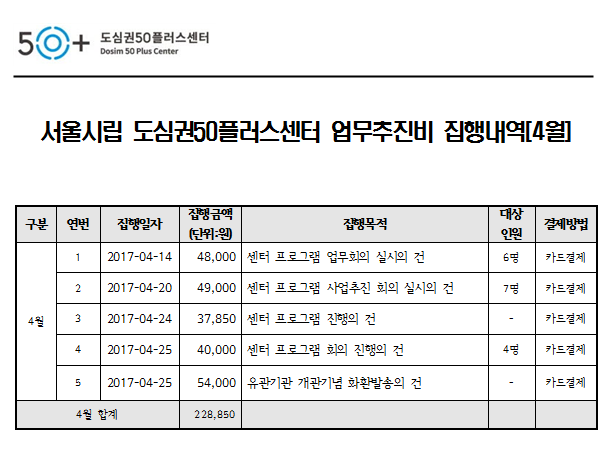 2017년 4월 업무추진비 공개
