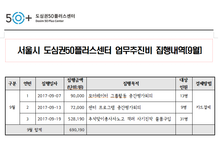 2017년 9월 업무추진비 공개