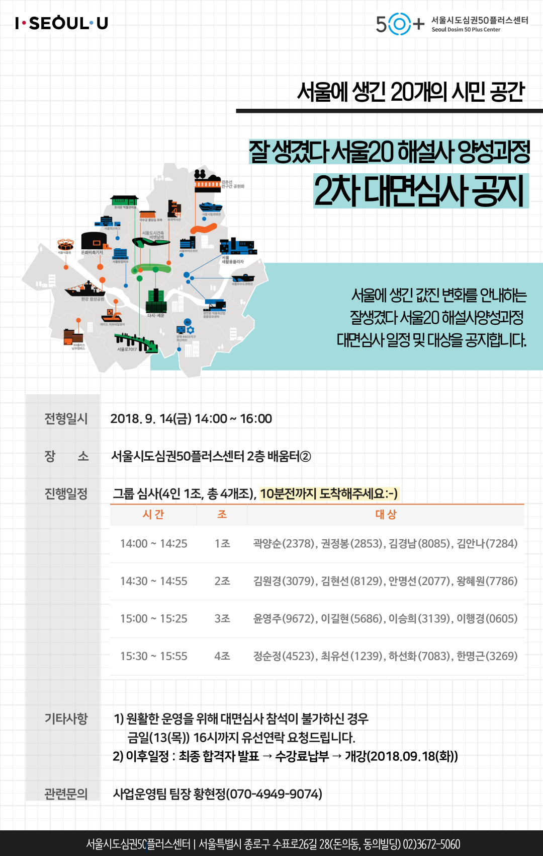 「잘생겼다 서울20」 해설사 양성과정 2차 대면심사 공지