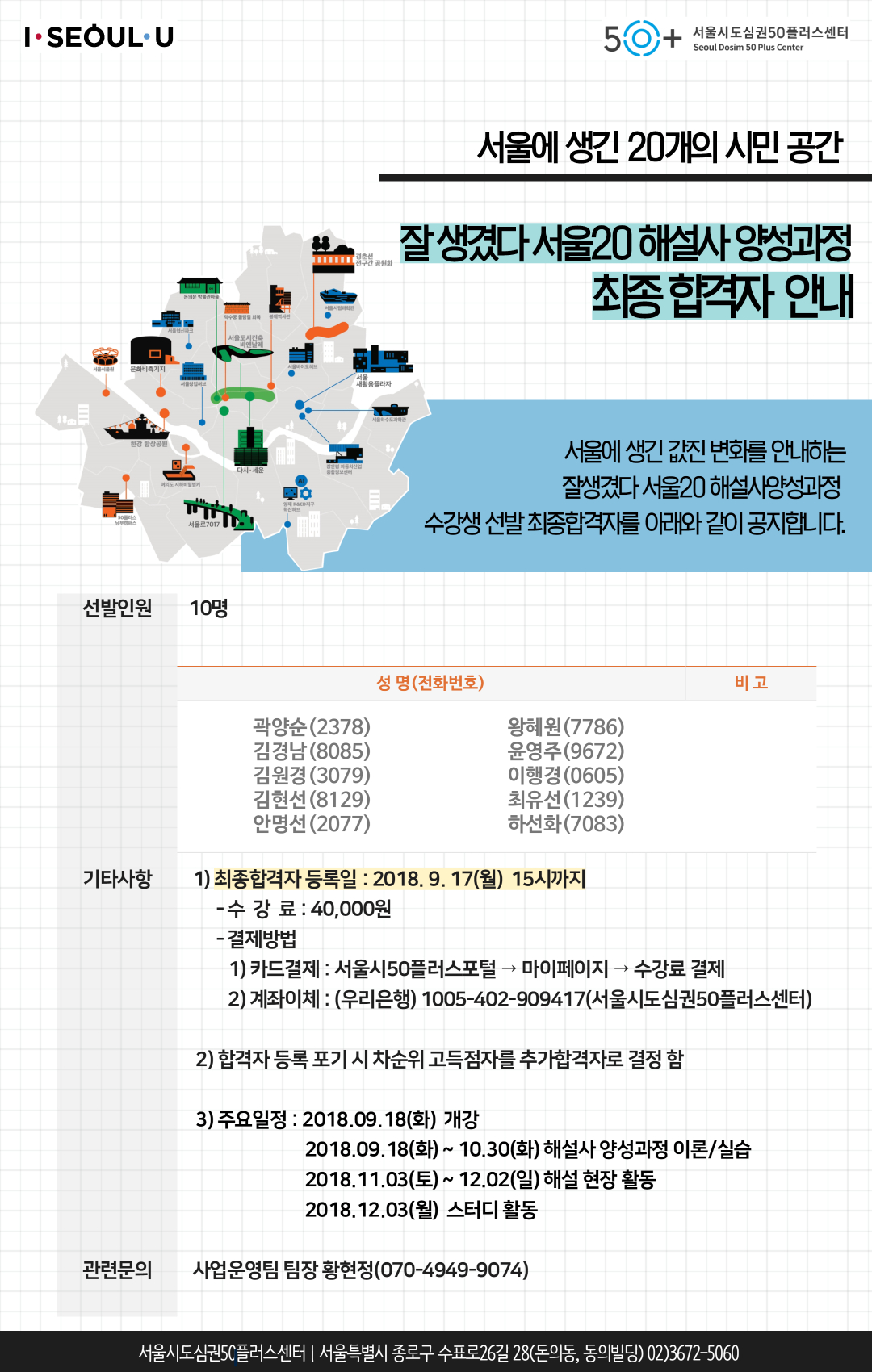 「잘생겼다 서울20」 해설사 양성과정 최종 합격자 공지
