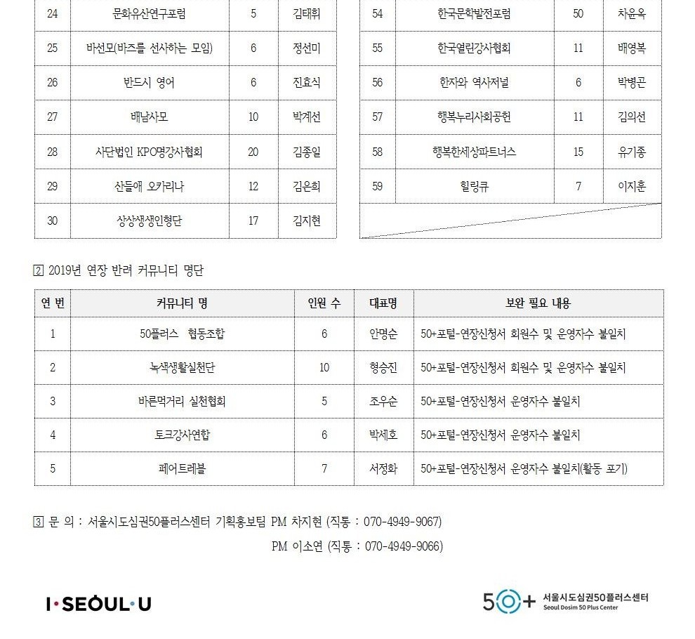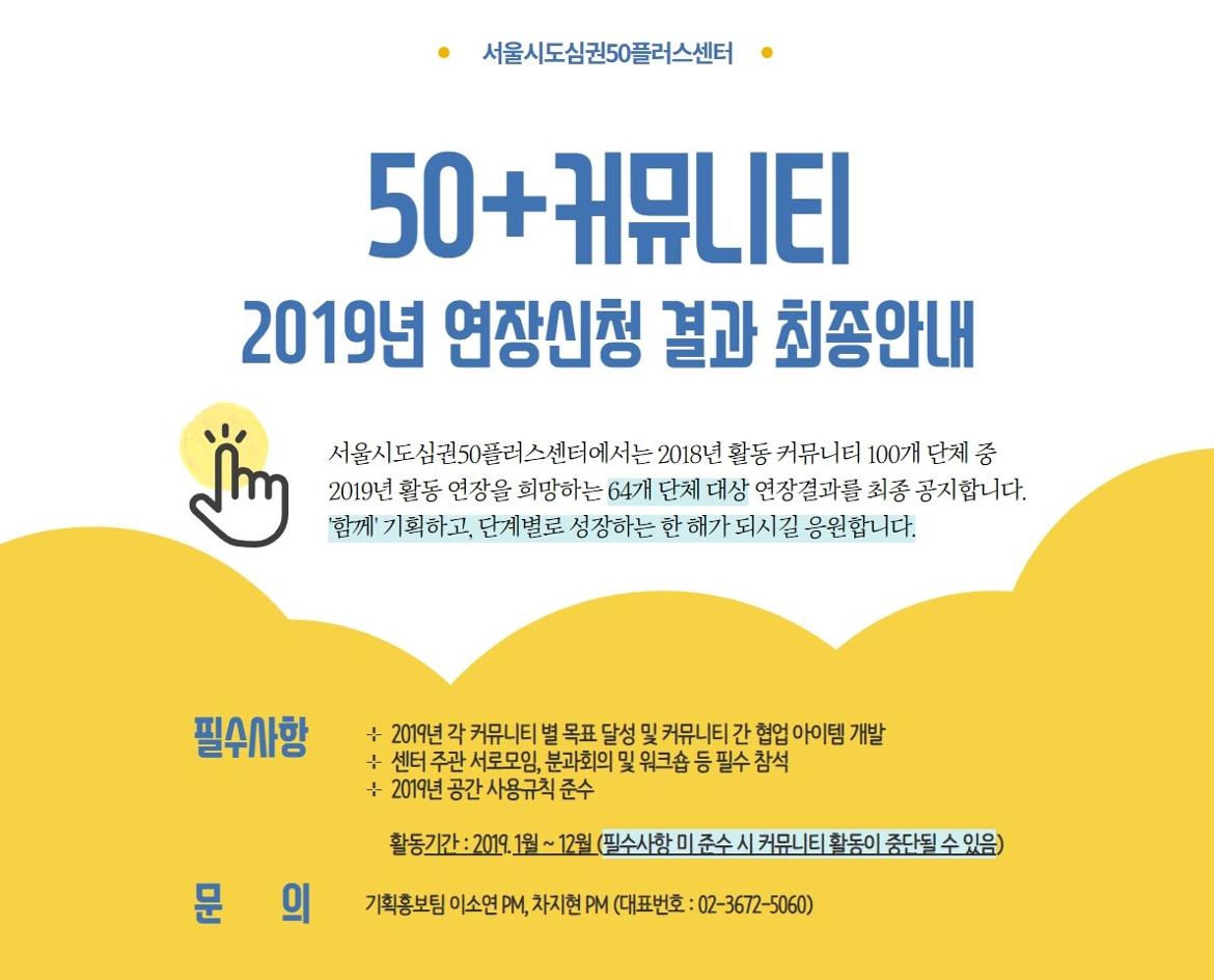 서울시도심권50플러스센터 2019년 커뮤니티 연장 최종 결과 안내