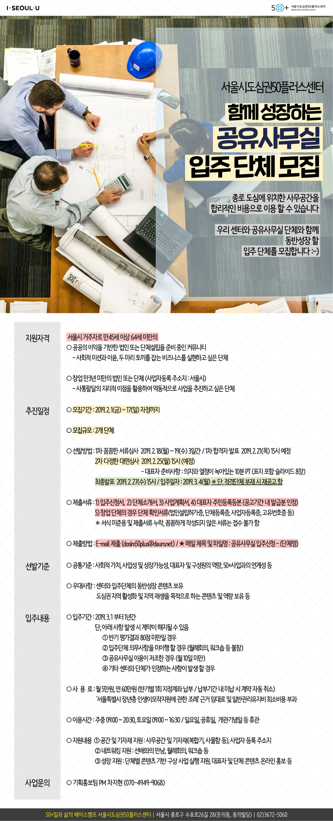 '함께 성장하는' 공유사무실 입주단체 모집 공고