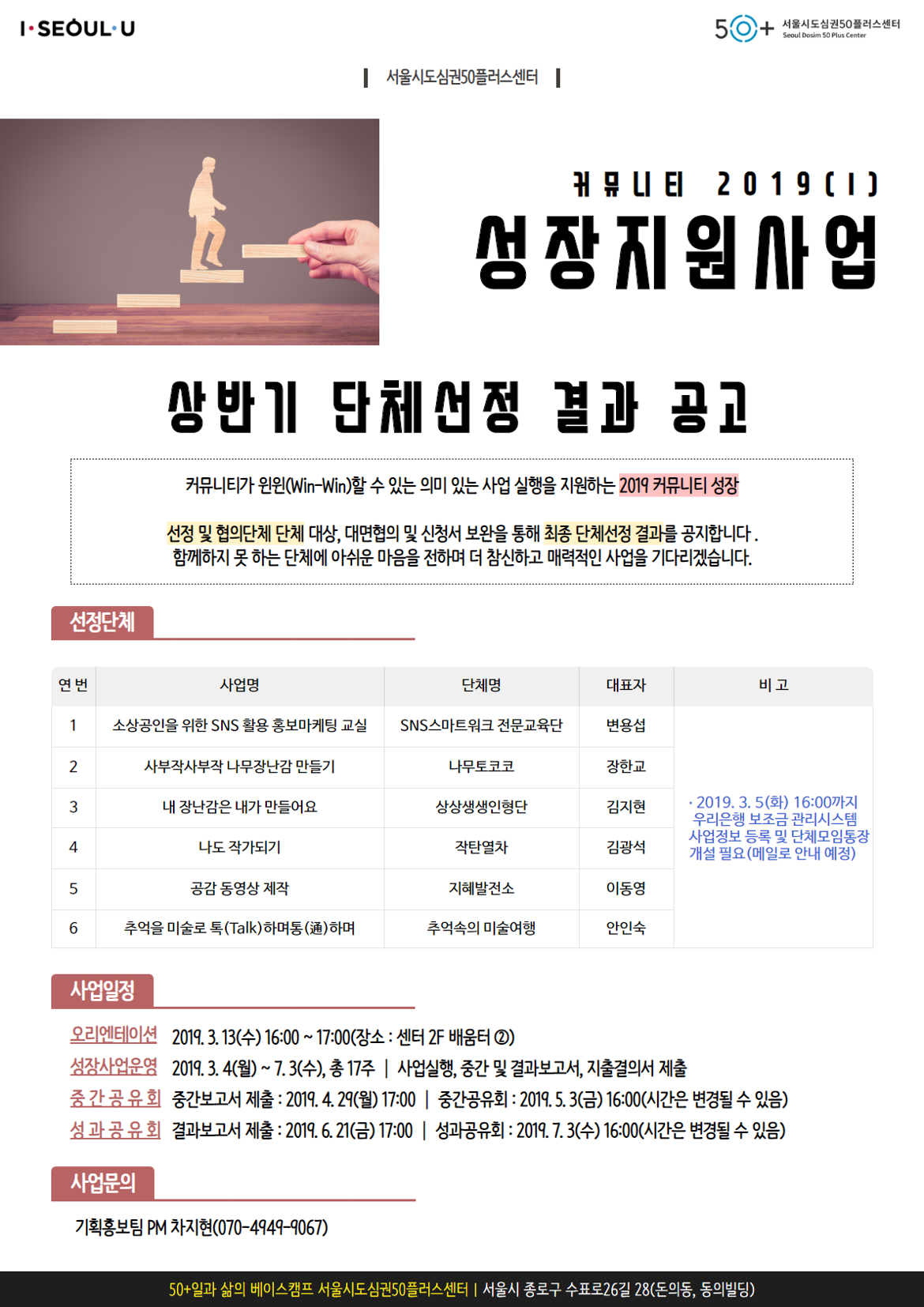 윈윈(Win-Win) 프로젝트 : 커뮤니티 성장 상반기 단체선정 결과 공고