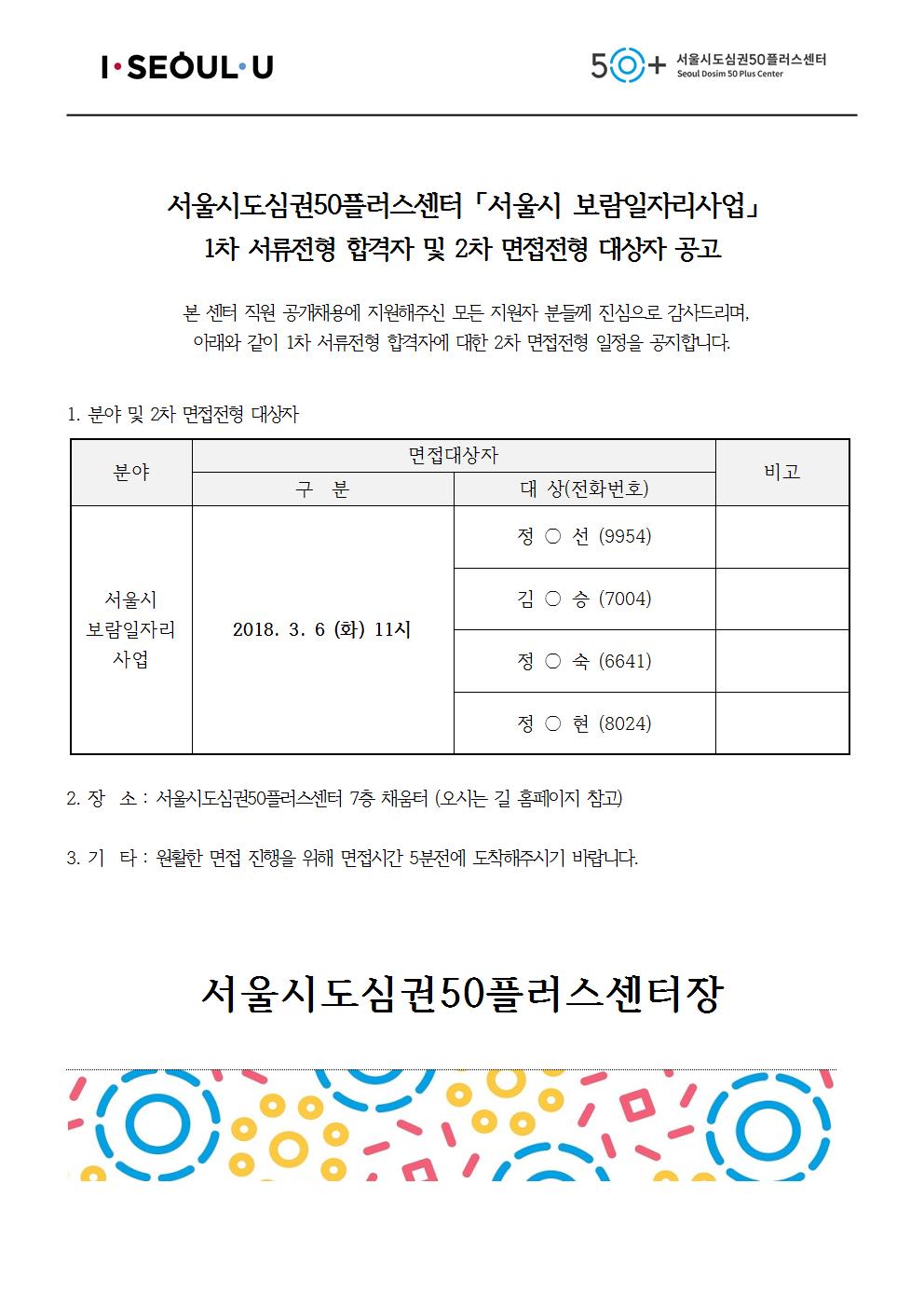 [채용] 서울시보람일자리사업 매니저 1차 서류전형 합격자 및 2차 면접전형 대상자