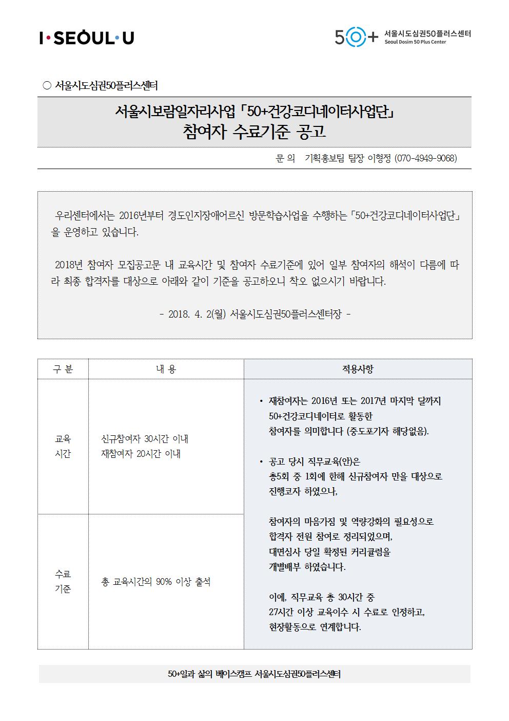 50+건강코디네이터사업단 참여자 수료기준 공고