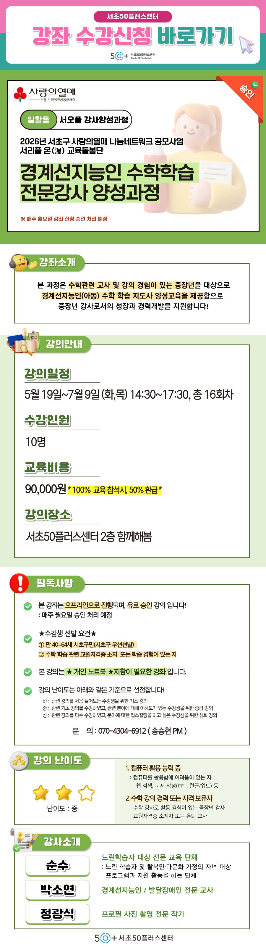 [서초][서초구 사랑의열매 나눔네트워크 '서리풀 온(溫) 교육돌봄단'] 경계선지능인 수학학습 전문강사 양성과정마감 D-25