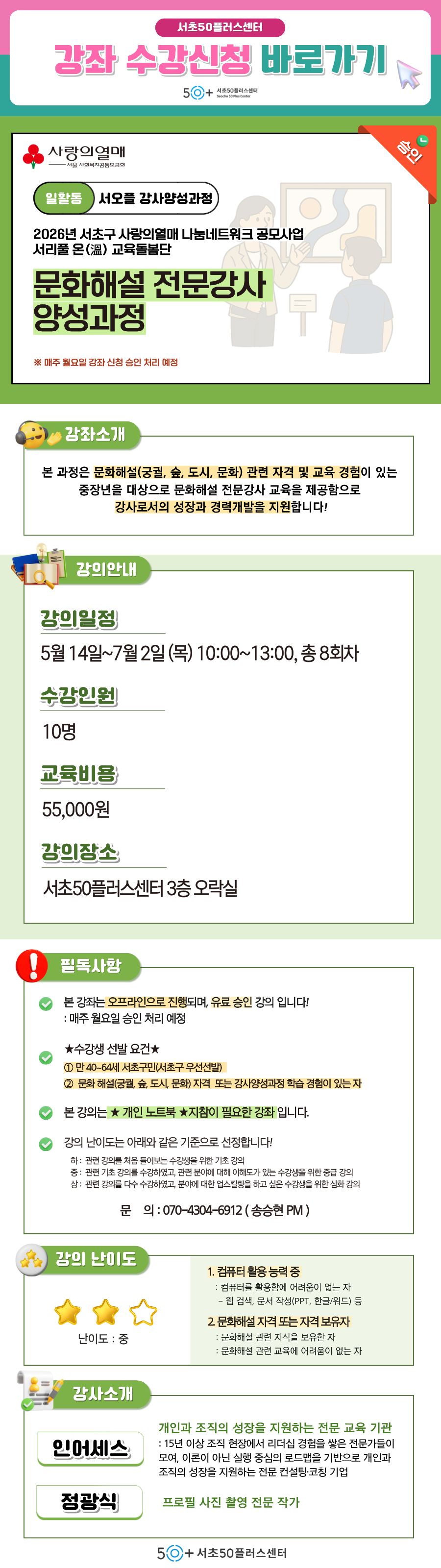 [서초][서초구 사랑의열매 나눔네트워크 '서리풀 온(溫) 교육돌봄단'] 문화해설 전문강사 양성과정마감 D-20