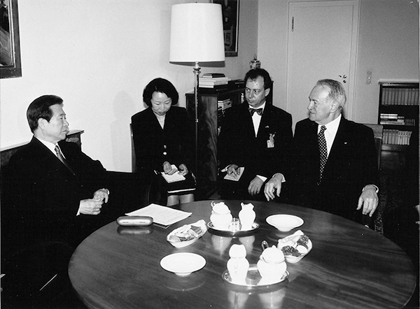 ▲ 폰 바이체커 독일 대통령 방한 당시 박준규 국회의장 통역. (1991. 2)