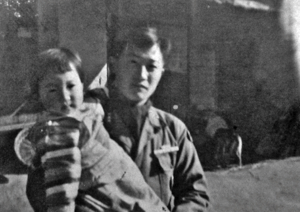 ▲ 아기 때 큰 오빠 김한준 대위의 품에 안겨서. (6·25전쟁 당시)