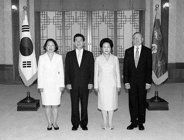 ▲ 김영희 대사 신임장 제정(2005. 9), 노무현 대통령 내외와 김영희 대사 부부.