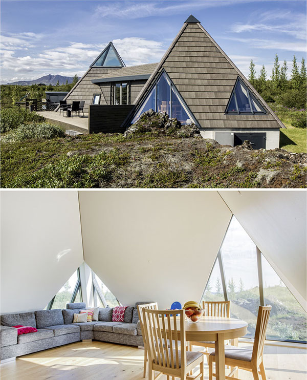 뾰족한 피라미드 모양이 재미있는 이 산장은 아이슬란드 남쪽에 자리한 라가바튼(Laugarvatn) 강가 작은 마을에 있다. 수 세기 전 용암이 굳어 형성된 넓은 용암지대에 위치하고 있어 흔히 볼 수 없었던 나무와 이끼, 식물들을 구경하는 재미가 있다. 최대 6명까지 수용 가능한 산장의 뒷마당에는 아이들이 뛰놀 수 있는 놀이터까지 있어 가족 여행에도 좋다. 차량으로 10분 거리에는 간헐천이 있고, 도보 2분 거리에는 골프 코스와 승마장이 있어 숙박만으로도 충분한 여행이 된다.