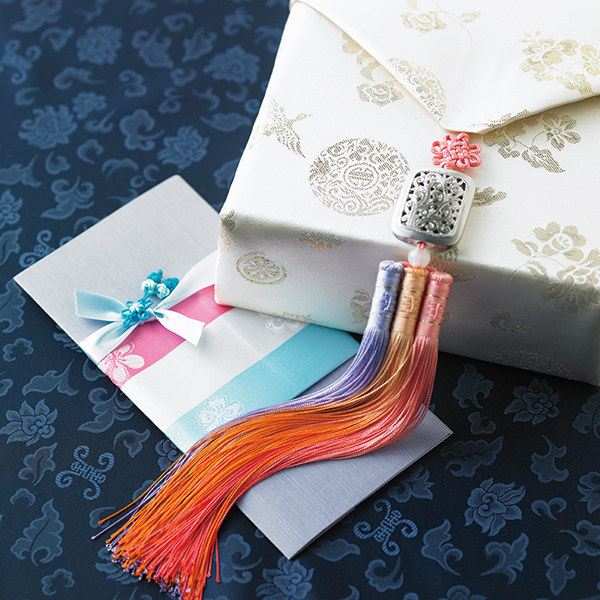 그렇다면 설날 명절을 위한 특별한 선물 포장 방법은 없을까? 이형주 강사에 의하면 뜻밖에 설날이나 명절 선물 포장에 신경 쓰는 사람들이 많다고 한다. 주로 보자기와 노리개 장식을 많이 사용한다. 보자기는 치수에 따라 가격이 많이 달라지는데 보자기 가격만 3만~4만 원 정도 한다. 거기에 노리개 장식이 들어가면 2만~3만 원이 더 추가된다. 보자기 치수와 노리개 가격에 따라 포장가격은 천차만별이다.