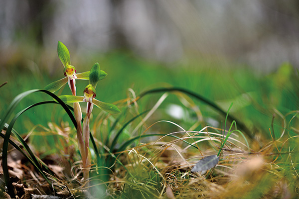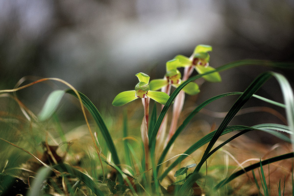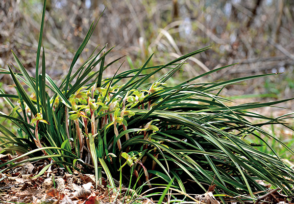 보춘화는 물론, 전국의 산에서 비교적 흔하게 보는 감자란도 비록 혹독한 추위에 질린 듯 검푸르지만, 여름철과 진배없이 푸르고 무성한 잎을 유지합니다. 특히 날렵하고 기품 있게 뻗은 잎이 일품인 보춘화는 땅속 알뿌리에 봄이 왔음을 알리는 고고성을 잉태한 채 한겨울을 이겨내고 있습니다.