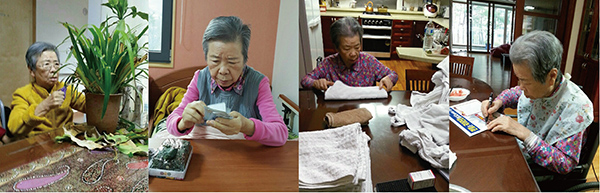 화초 다듬기나 지폐 세기, 수건 개기 등 간단한 일들을 해내며 성취감을 느끼고 있다.