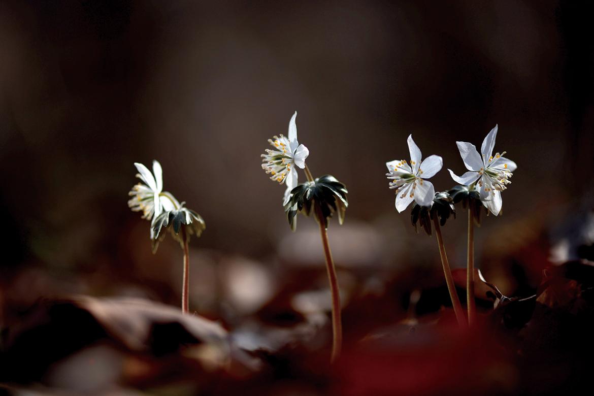 ‘봄은 발끝에서 온다’는 말 그대로입니다. 눈에 보이는 계곡은 아직 얼음투성이이지만, 발밑에선 손톱만 한 너도바람꽃이 봄을 노래합니다. 여리디여린 너도바람꽃이 얼음장 같은 땅바닥을 뚫고 나와 순백의 꽃을 피우는 걸 직접 목도하는 순간 많은 이들이 자연의 신비, 생명에 대한 외경을 체험한 듯 야생화의 세계에 빠져듭니다.