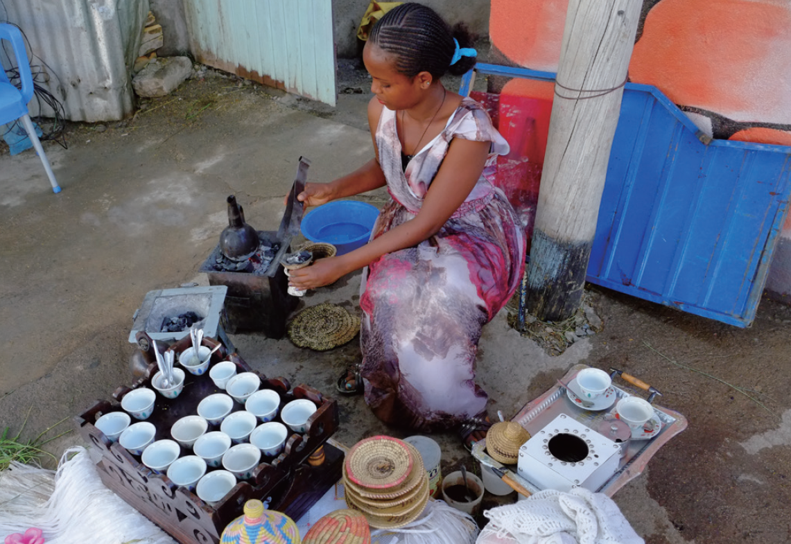 에티오피아 여행이 지닌 최고의 매력은 ‘분나 마프라트(Bunna Maffrate)’라 불리는 독특한 커피 세리머니다. ‘커피(coffee)’라는 말부터가 에티오피아의 지역명인 ‘카파(kaffa)’에서 왔으며, 에티오피아말로 커피를 뜻하는 ‘분나(bunna)’라는 말에서 ‘원두(bean)’가 나왔다 할 정도이니 이곳을 왜 커피의 기원이라 부르는가에 대해선 더 이상의 설명이 필요 없을 것 같다. 에티오피아인들에게 커피는 단순한 음료 이상의 의미를 지닌다. 생존을 위한 귀한 식량인 동시에 신께 올리는 신성한 경배의 수단인 것이다. 이 의식을 제대로 하려면 한 시간 넘게 걸리는데 먼저 향을 피워 몸을 정결히 한 후 원두를 프라이팬에 볶는다. 그런 다음 절구에 넣고 찧어서 낸 가루를 ‘제베나(jebena)’라는 목이 긴 주전자에 넣고 끓여서 ‘시니(cini’)라 불리는 작은 잔에 따라 마신다. 보통 세 잔을 마시는 것이 기본이며 팝콘이 같이 제공되기도 한다. 누군가 에티오피아에서 맛보는 커피 맛을 ‘천국의 맛’이라 했는데, 어딜 가든 맛있고 다양한 커피를 맛볼 수 있다는 점에서 커피 마니아에게 에티오피아는 천국 같은 여행지임이 틀림없다.