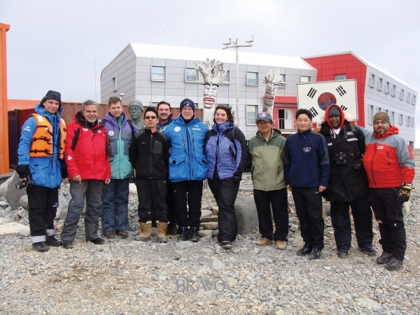 성됐다. 뒤쪽 줄 좌측에서 네 번째가 월동대장을 맡았던 장순근 박사.