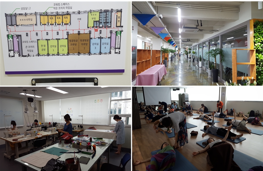 긴 복도를 중심으로 다양한 공간들이 배치되어 있었고, 다양한 강좌가 진행 중이었다.