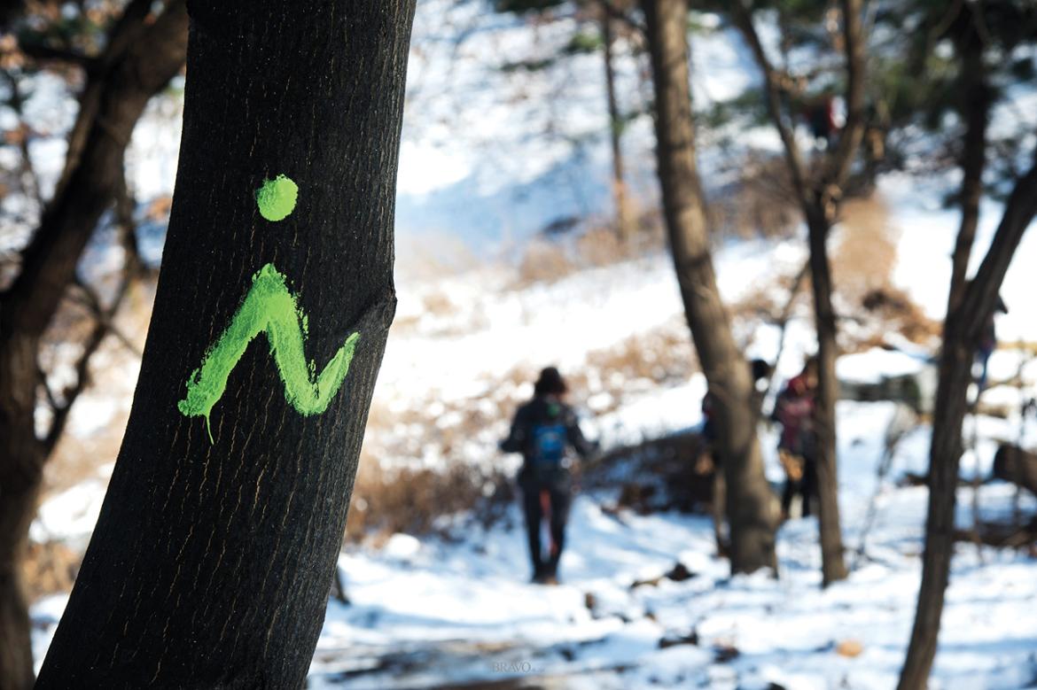 ▲지난 3월 1일, 아름다운 도보여행 회원들은 삼남길 서울구간 우면산 코스에 길 표시 작업을 했다.