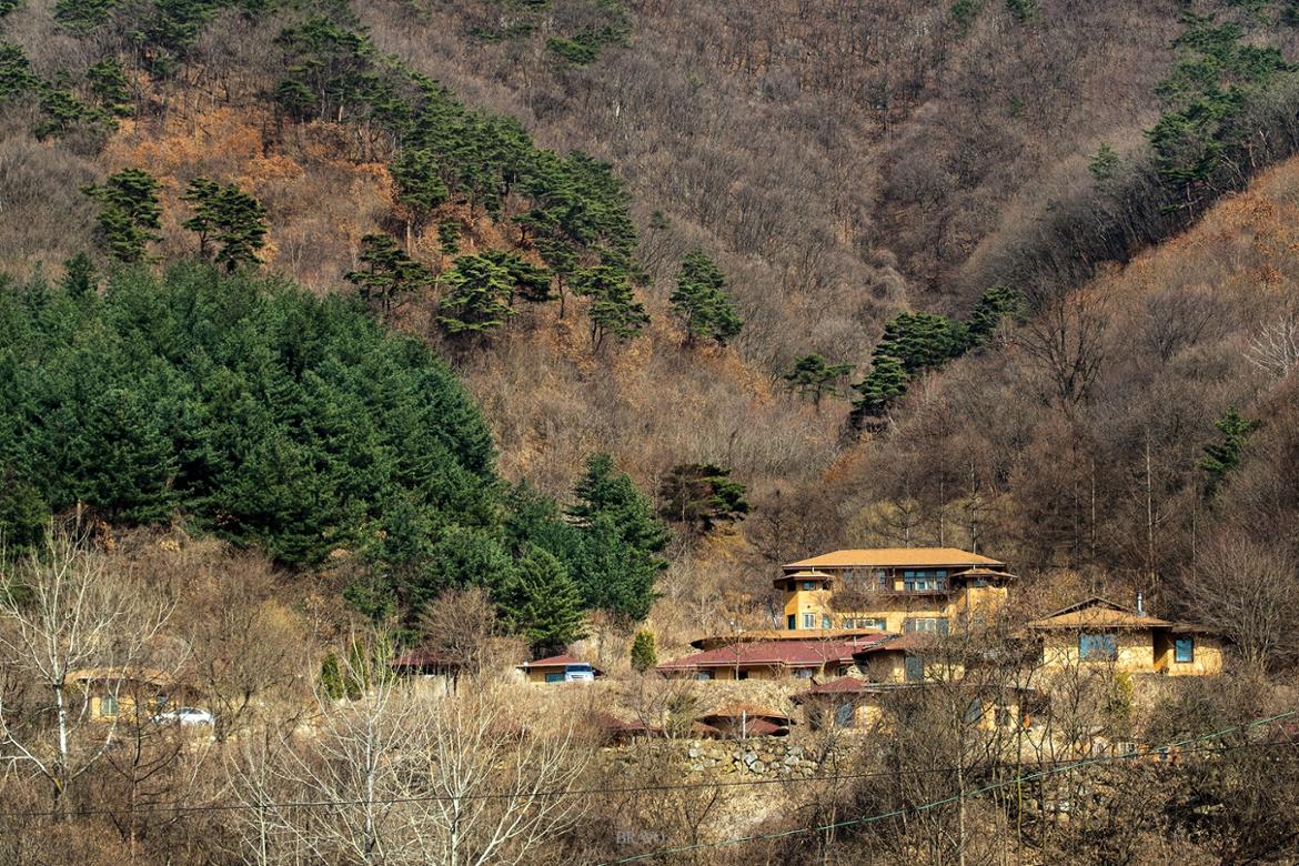 ▲흙집학교가 위치한 고즈넉한 산골마을의 골짜기 건너에서 바라본 ‘흙처럼 아쉬람’.