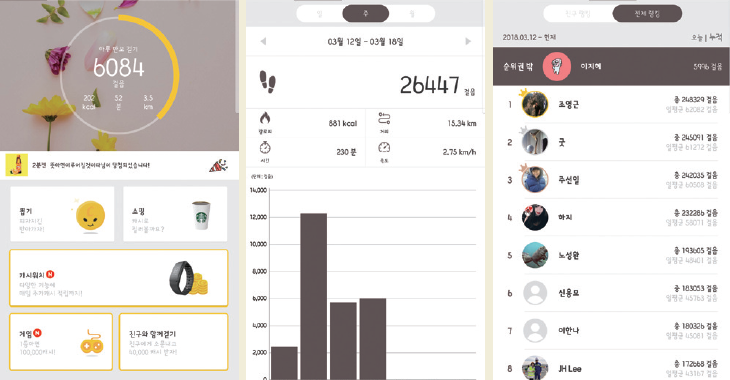 걷기만 해도 돈을 있다면? 캐시워크는 일반적인 만보기 기능에 걸음 수에 따라 포인트를 제공한다. 100걸음당 1포인트씩, 하루 최대 1만 보까지 적립할 있다. 적립된포인트는 편의점, 카페, 레스토랑 제휴점 쿠폰이나 상품권으로 교환 가능하다. 포인트를 쌓으려면 앱을 채로 다녀야 하는데, 시간당 배터리 소모가 1% 이내이고 데이터 사용량도 많지 않아 마음껏 걸어도 부담 없다.