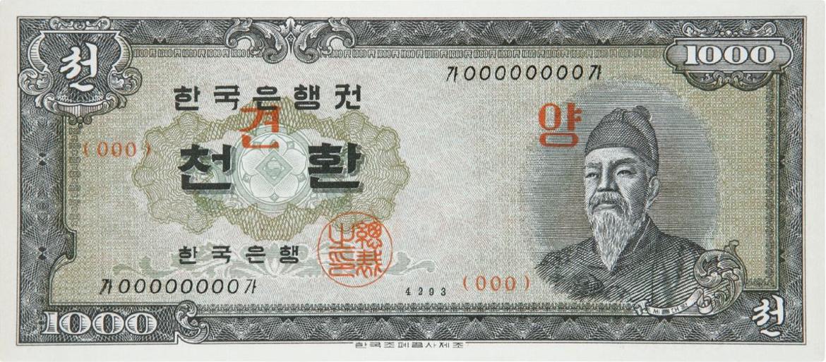 ▲1960년 발행된 천환 앞면 세종대왕 초상 사용