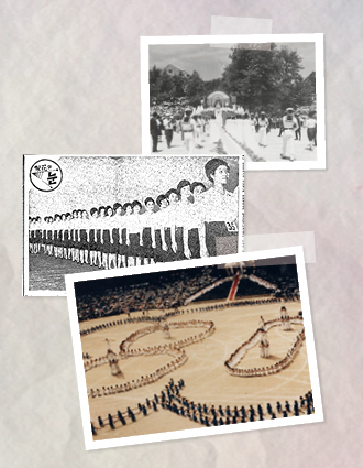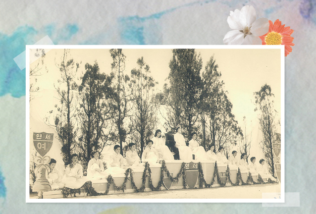 ▲1950년대 말 연세대 개교기념행사에서 연세여왕으로 뽑힌 학생들과 대관식의 풍경.