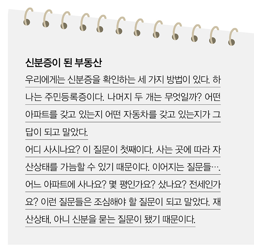 우리나라 사람들의 중간 등급은 3등급이다. 가족들이 이사를 가고 싶어 하면 자산 등급은 한 단계 떨어지지만 주거 만족도가 높으면, 반대로 한 단계 올라간다고 생각해도 무리가 없다. 보유 자산 등급은 상대적이며 우리나라 평균을 기준으로 작성한 것으로 심리적인 요소도 크다.