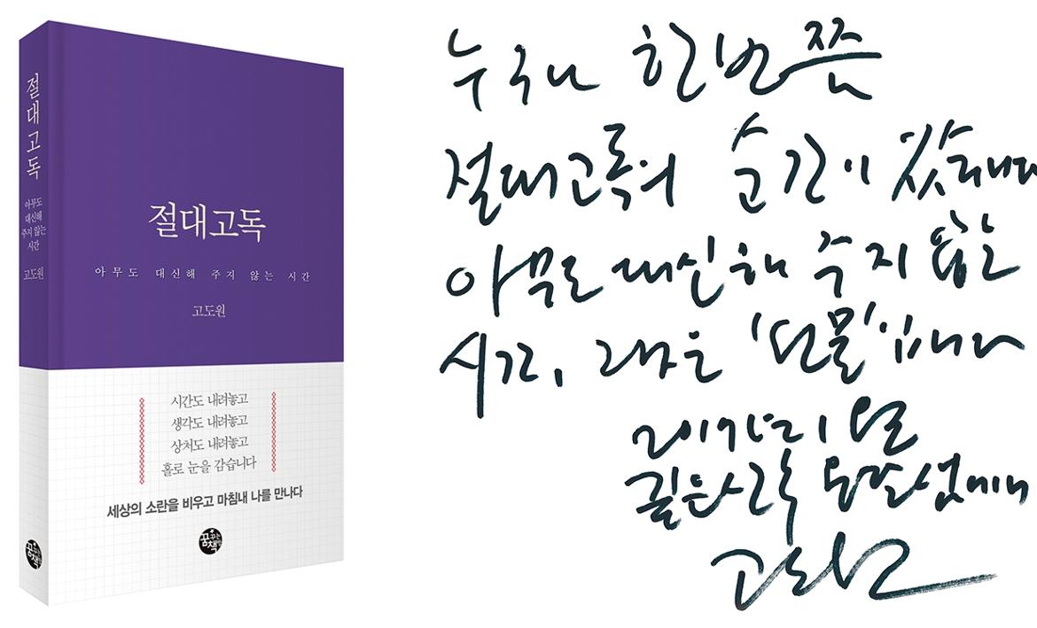 ▲고도원 아침편지문화재단 이사장의 <절대고독> 표지와 직접 적은 글귀