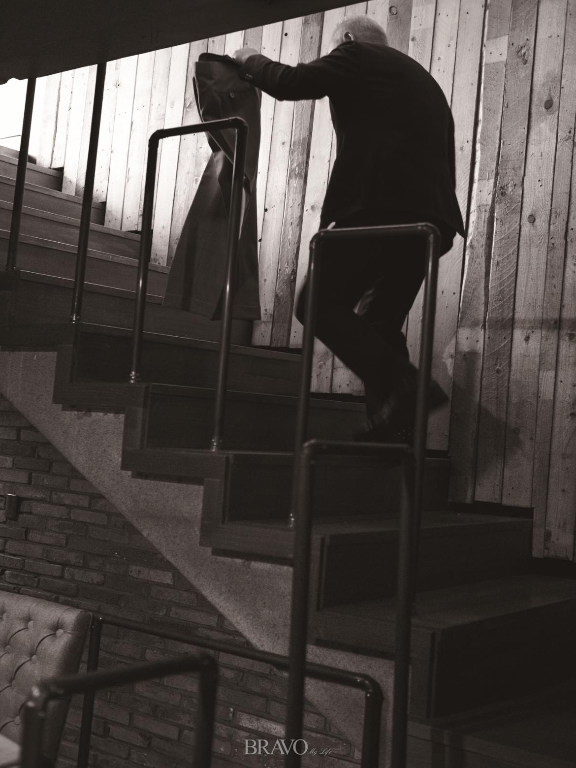 그에게 자신을 코디할 때 어떤 부분에 주안점을 두는지 물어보자 “체형”이라는 대답이 돌아왔다. “특히 머리와 얼굴 쪽에 주안점을 두고 옷을 입는 편입니다. 그런데 난 어떻게 입어도 자신 있어요. 나는 옷을 만드는 사람이니까 옷을 더 잘 입어야 해요(웃음).”