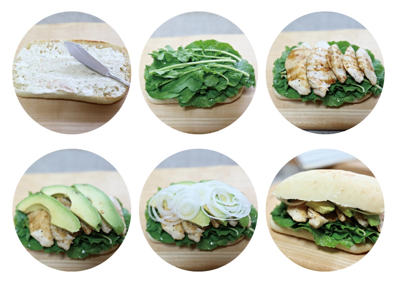 재료 치아바타 1개, 닭가슴살 1개, 로메인 8장, 아보카도 1/2개, 양파 1/4개, 소금, 후추