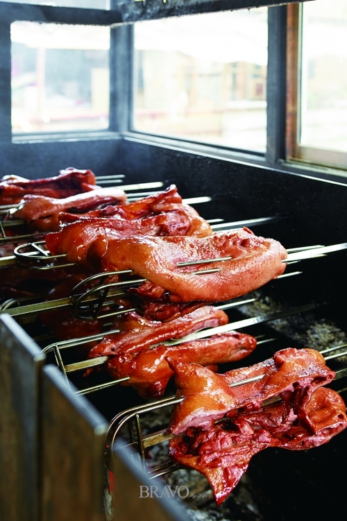 장독을 모아놓은 곳 앞에서는 그윽한 숯 연기가 피어오른다. 참나무 장작 바비큐를 준비하기 때문이다. 주인장이 자부하는 구이용 숯은 향이 좋은 오대산 참나무를 사용한다. 국내산 생삽겹살과 오리에 신안 천일염을 뿌려 먹기 좋게 구워 낸다. 낮에는 쌈 채소와 함께 숯불구이 정식으로 맛보고, 저녁에는 야외 테이블에 앉아 단품(삼겹살 바비큐 400g-2만5000원, 오리 바비큐 한 마리 4만5000원/반 마리 2만5000원)으로 즐기기 좋다.